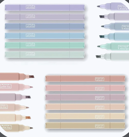 12 Highlighters with one wedged end & the other end thin point for underlining and writing. All comfort colors for your Bible Study and Bible.